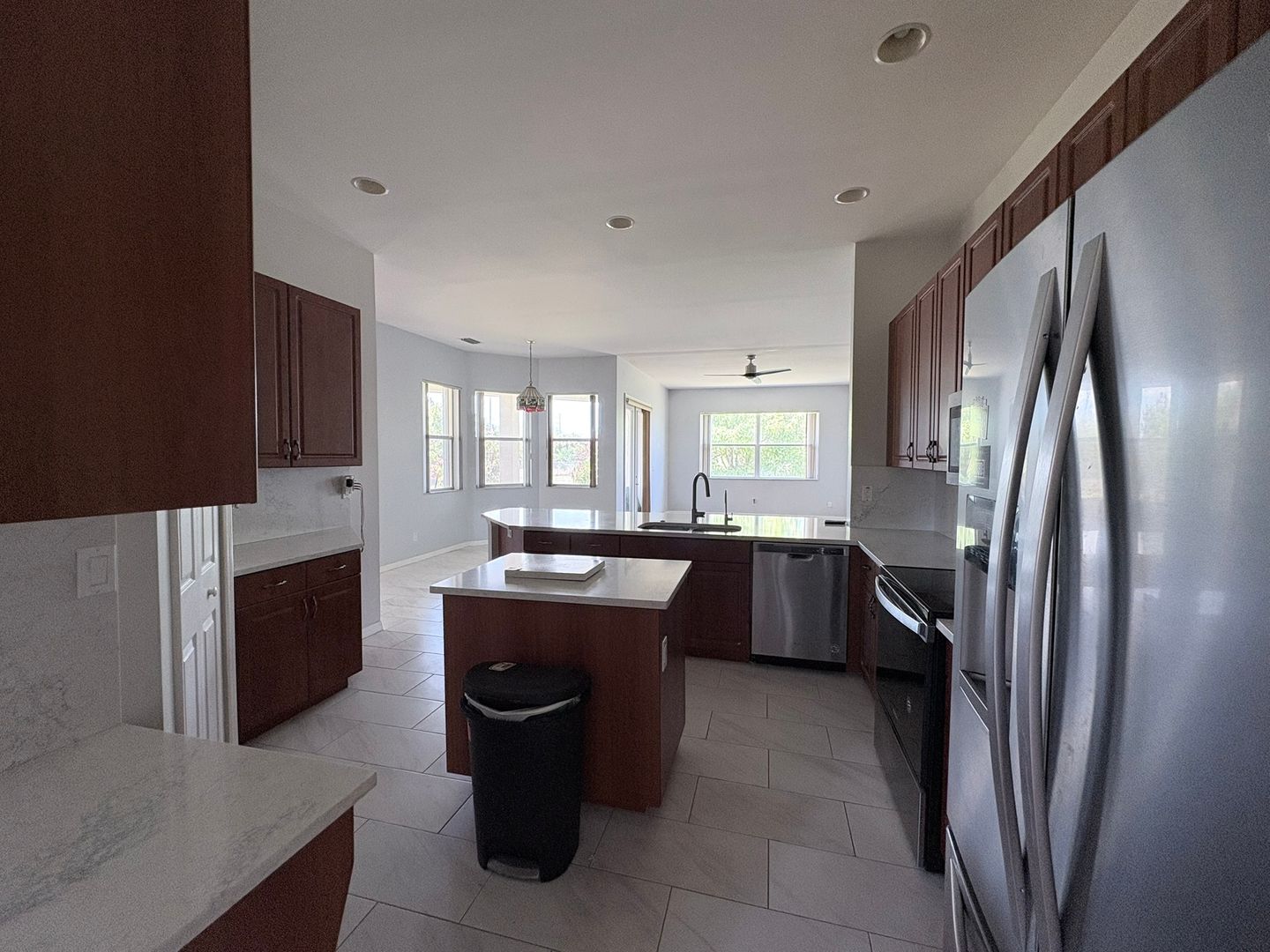 The kitchen is equipped with beautiful quartz countertops and stainless-steel appliances, making it both stylish and functional.