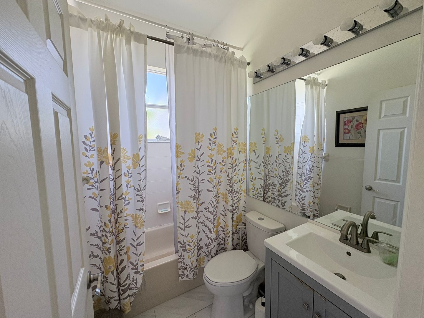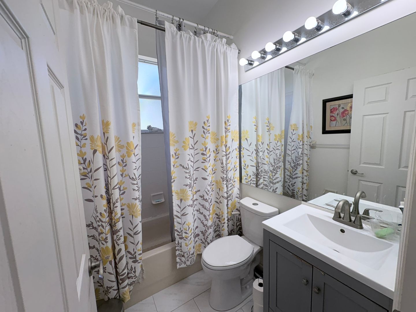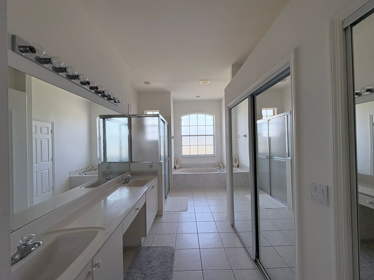 The spacious primary suite offers room for oversized furniture, a walk-in closet, and a luxurious en-suite bathroom complete with a sunken Jacuzzi tub, separate shower, and dual sinks. A unique highlight is the third bedroom, which has its own private entrance—ideal for guests or multi-generational living.