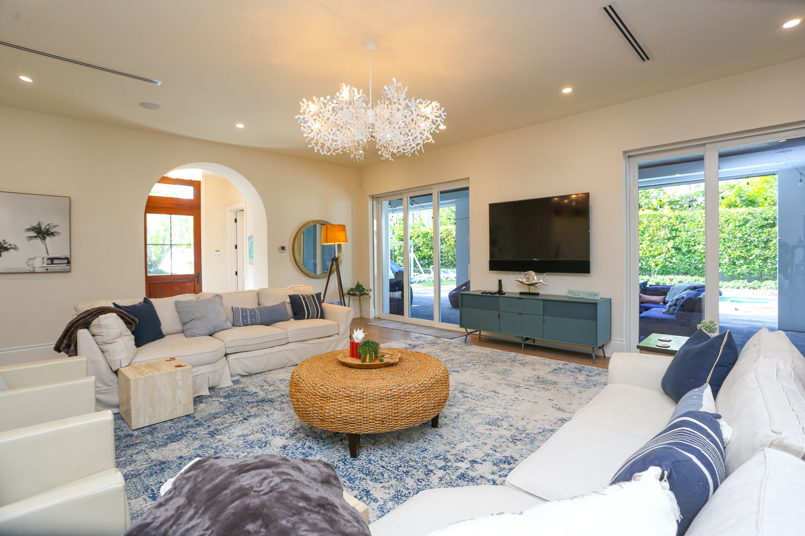 LOOKING FOR LUXURY LIVING WHILE BUILDING YOUR DREAM HOME OR SIMIPLY A SUMMER VACATION. Welcome to this stunning private pool & spa 5-bedroom, 5 1/2-bath oasis, meticulously designed for luxurious living. Nestled within walking distance to both the pristine beach and the vibrant downtown area, this home seamlessly blends elegance with coastal charm.