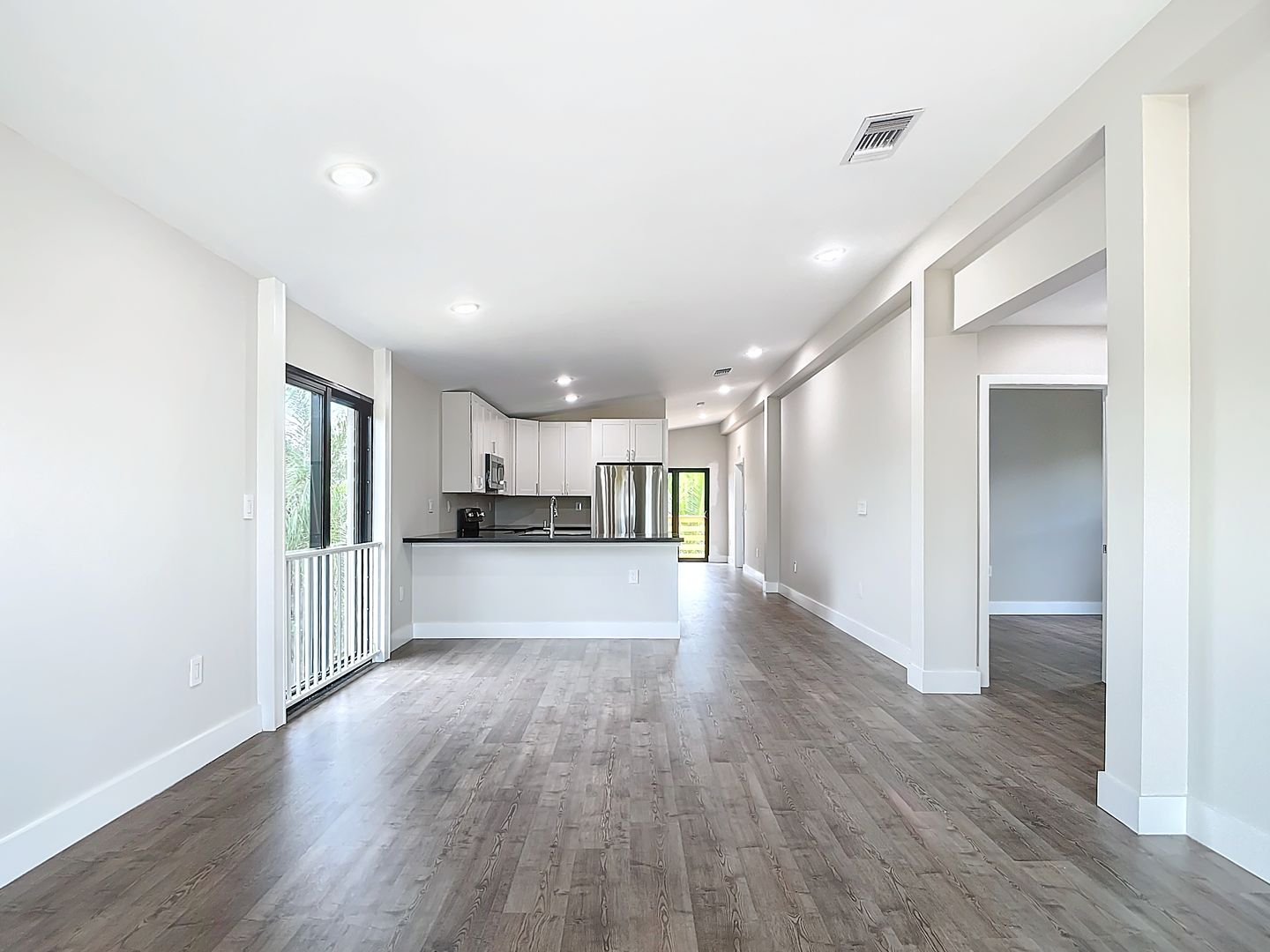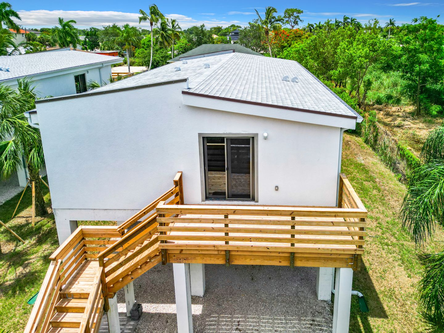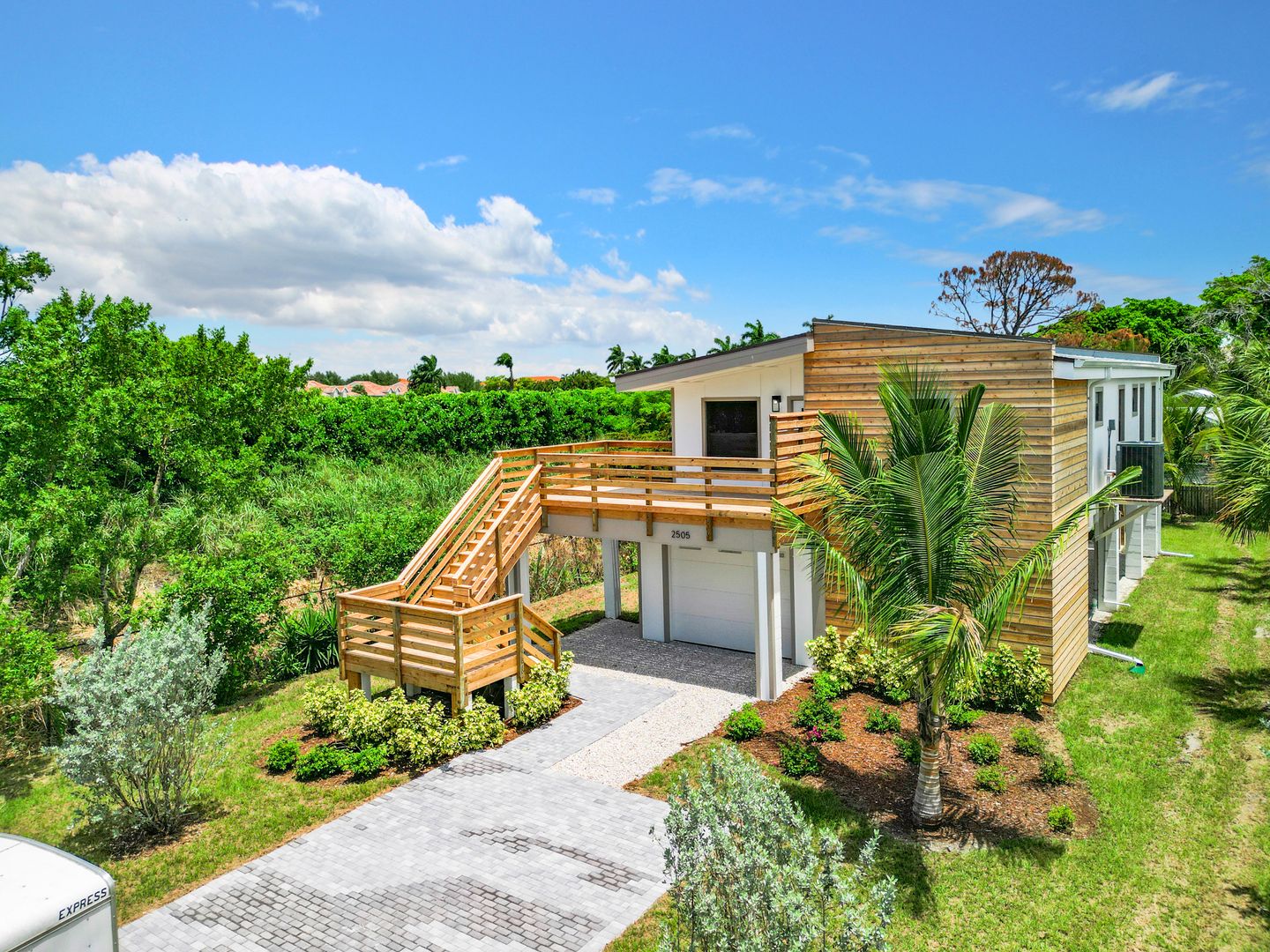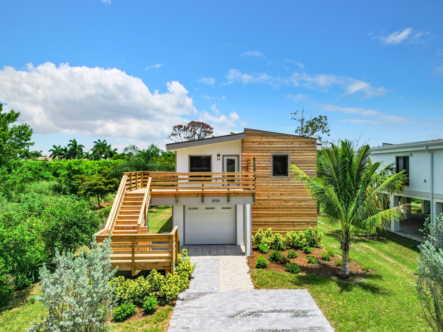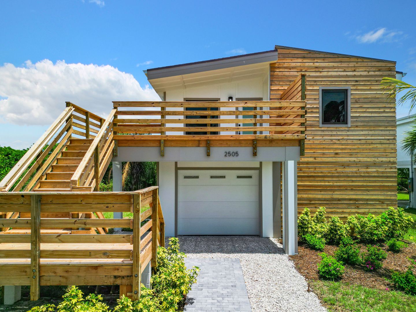 Flood and wind resistant, this stunning elevated steel-frame home is tucked away at the end of a peaceful street in the highly sought-after Bayshore Arts District. This newly completed home features three bedrooms, a den, and two full baths, all enhanced by luxurious plank vinyl flooring.