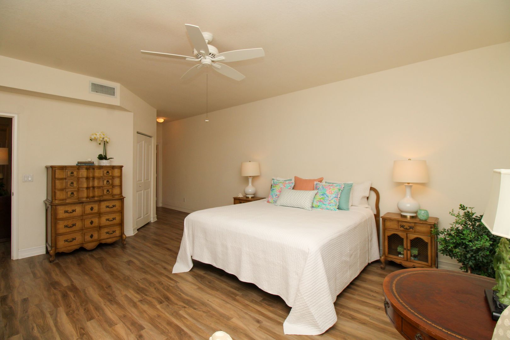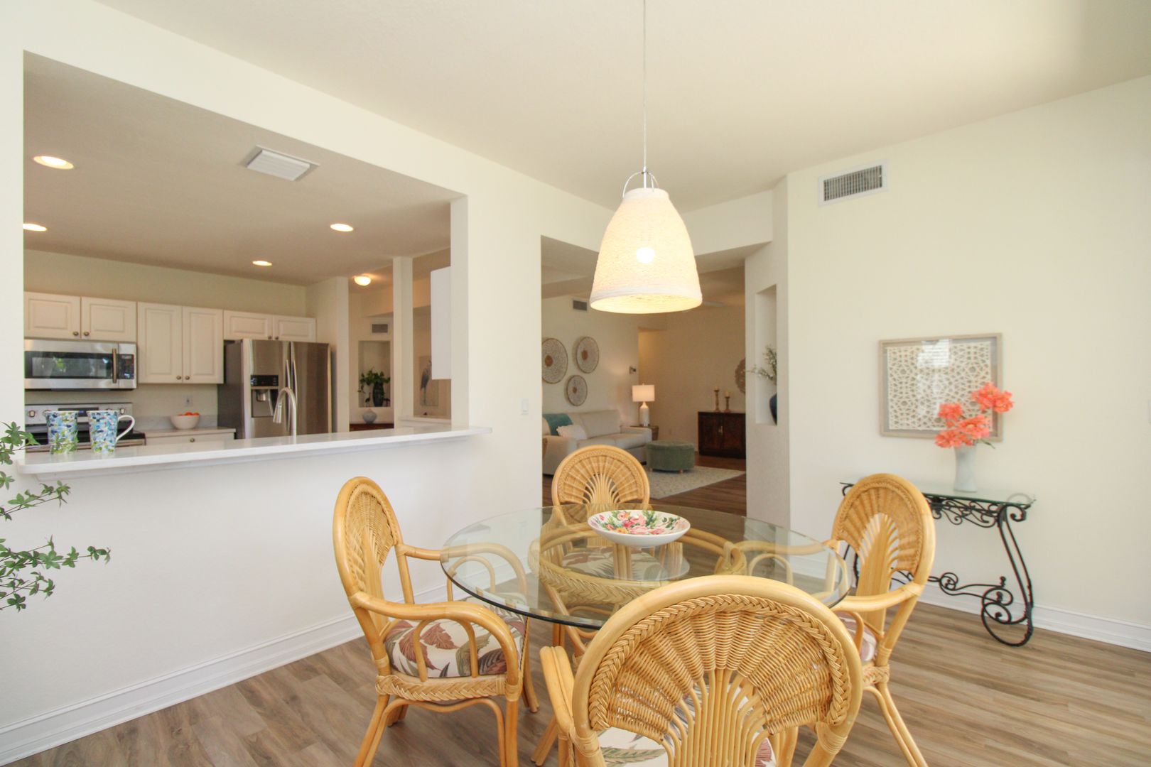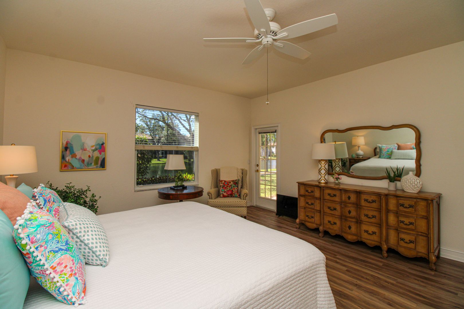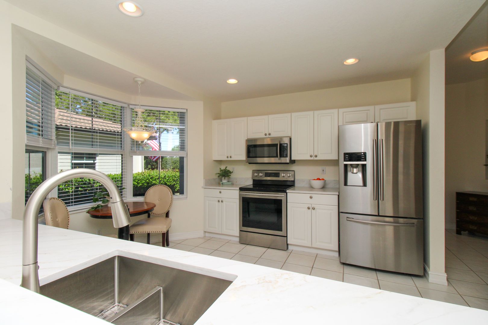 This beautifully maintained ground-floor end unit carriage home offers nearly 1,700 sq. ft. under air with plenty of natural light and stunning south-facing views of the lake and fountain.