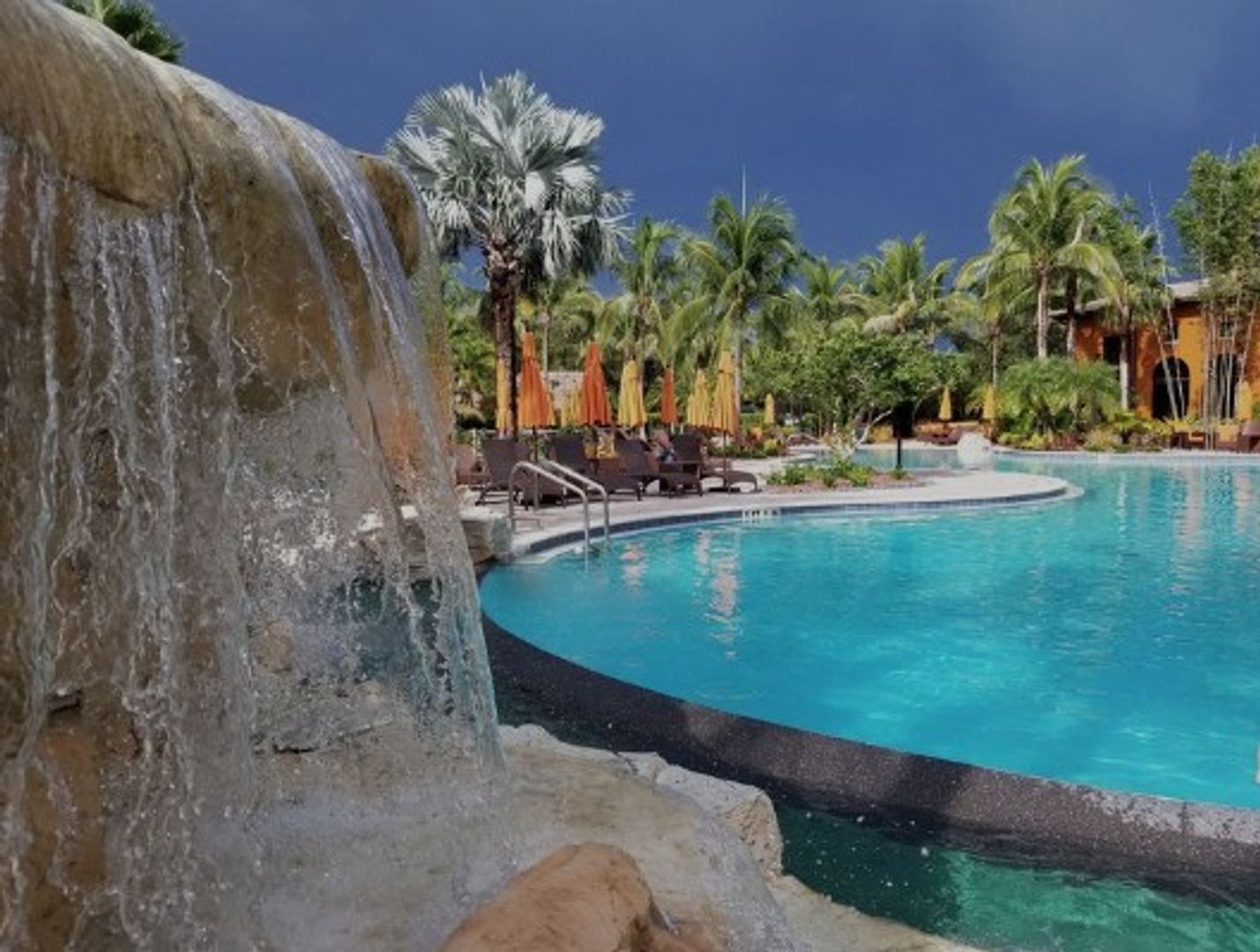 Resort-style pool with waterfalls & poolside drink service (except Mondays)