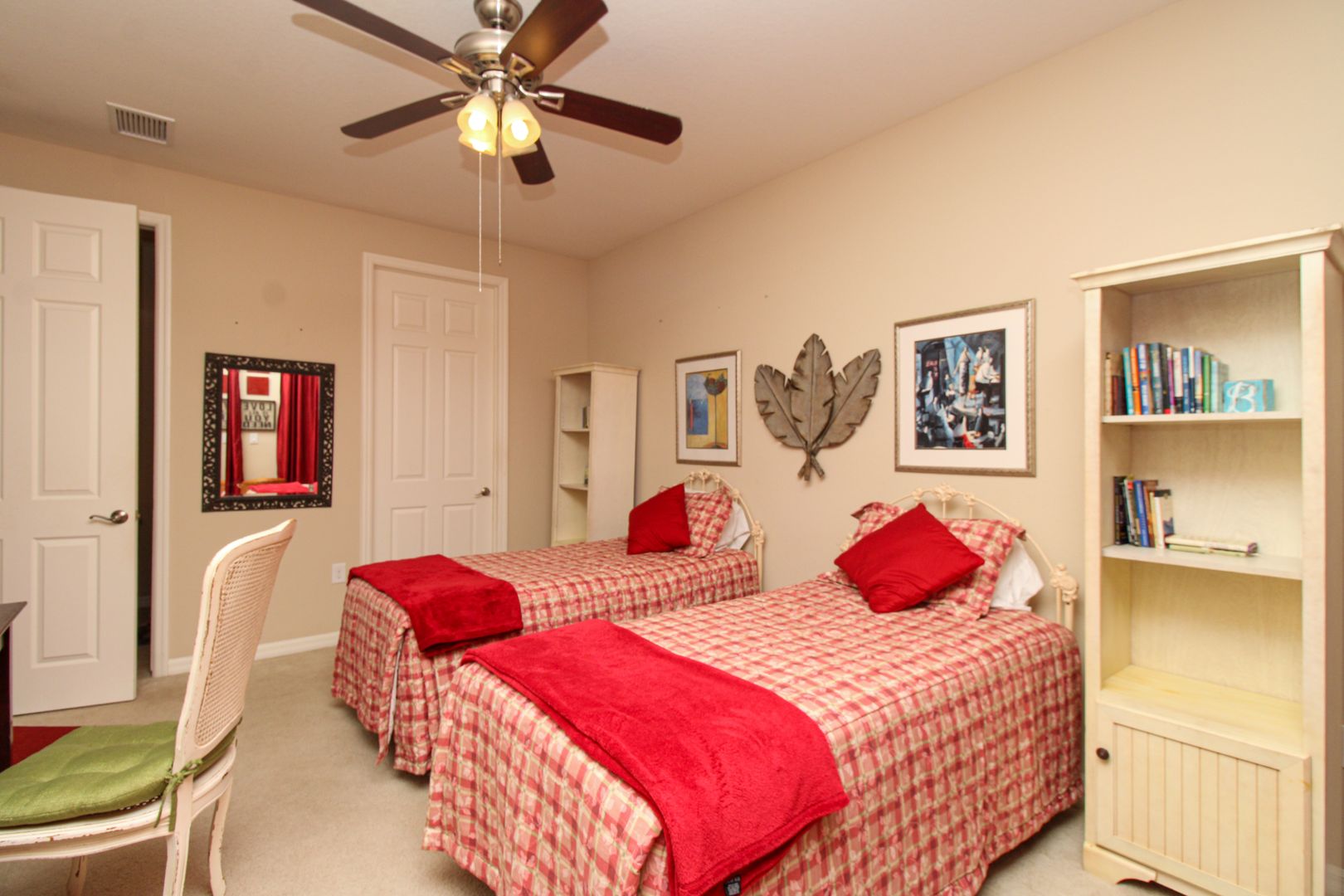 Guest Suite – Two twin beds, desk, TV with DVD player, tub/shower combo