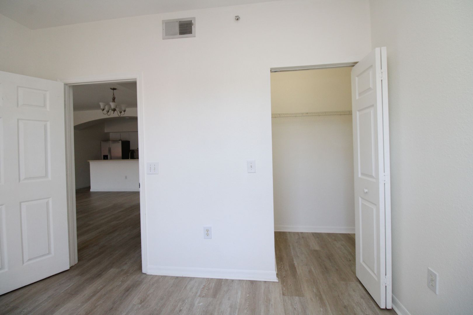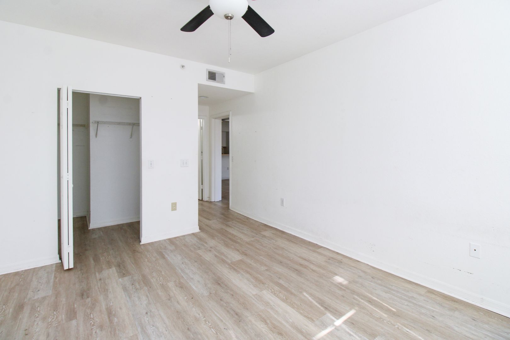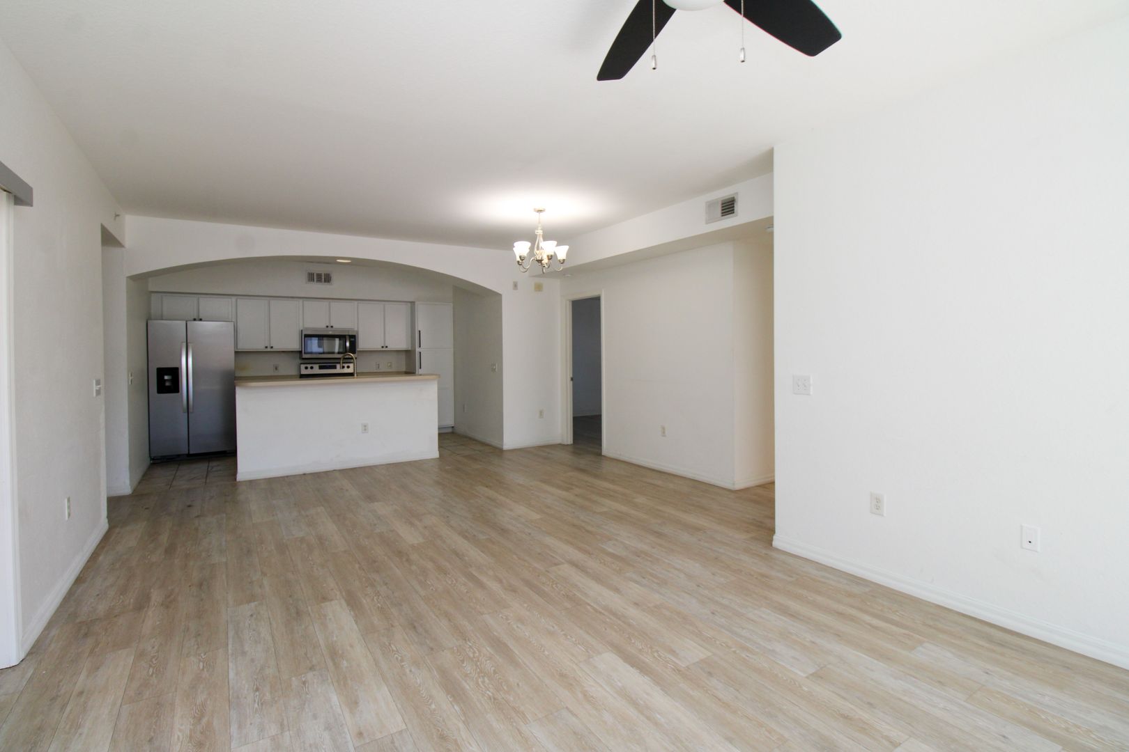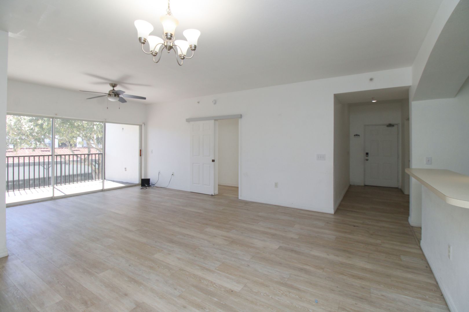 The unit has new flooring throughout, modern barn-door to the master bedroom, and kitchen has been updated with new paint and cabinets.