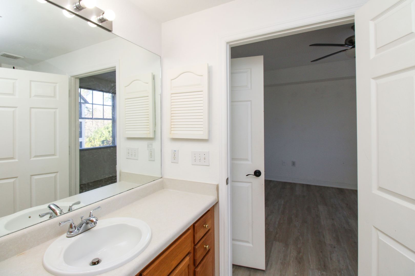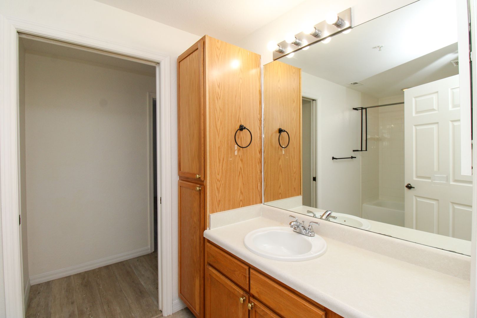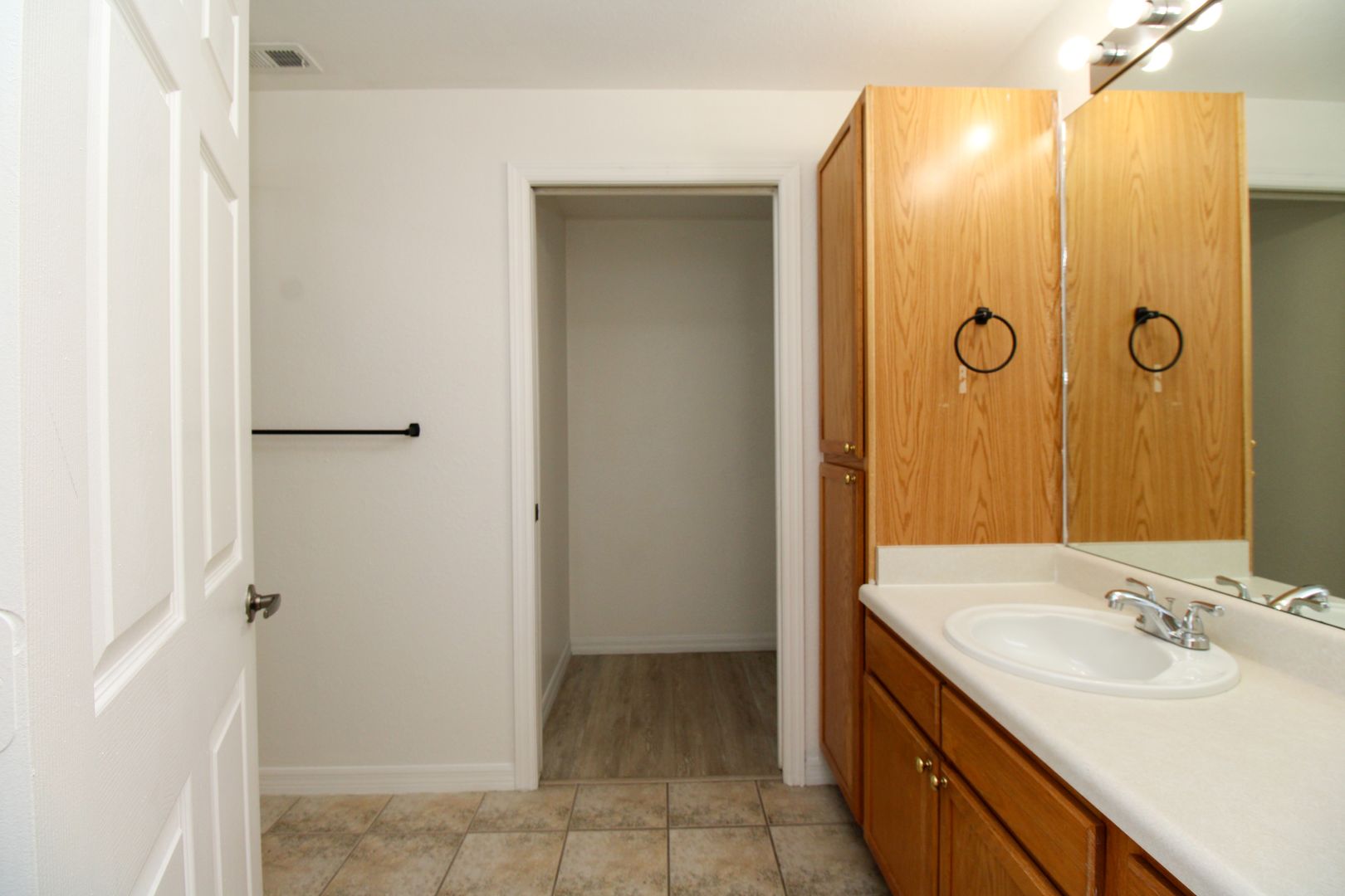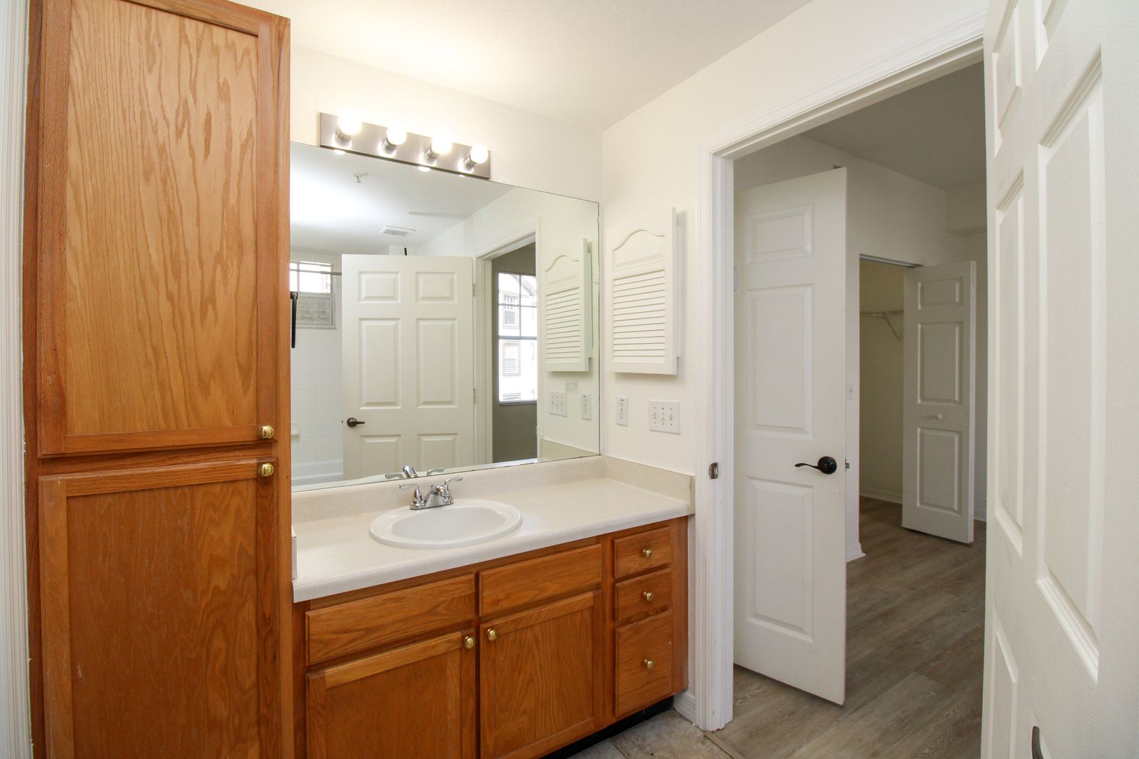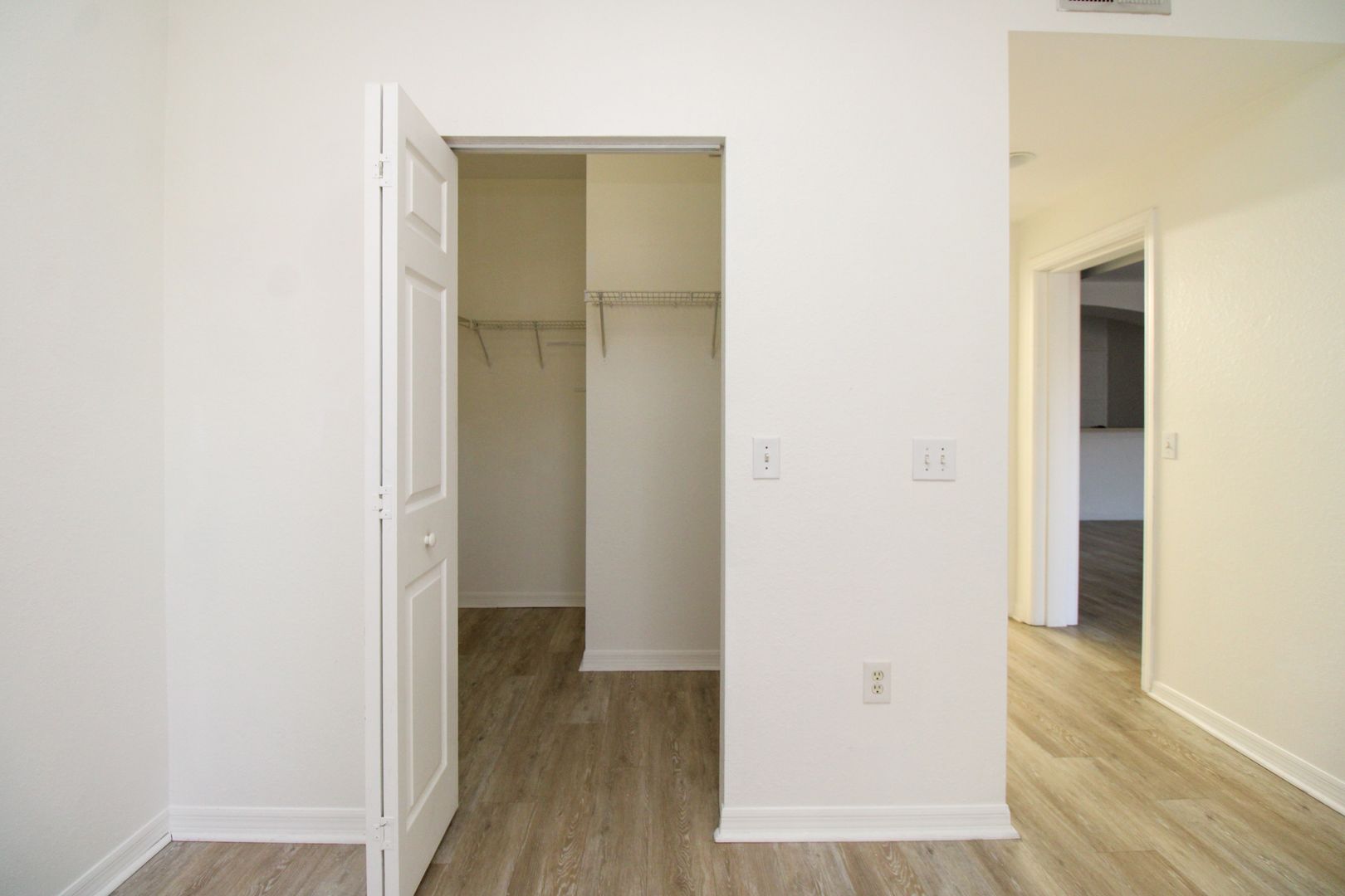 The unit has new flooring throughout, modern barn-door to the master bedroom, and kitchen has been updated with new paint and cabinets.