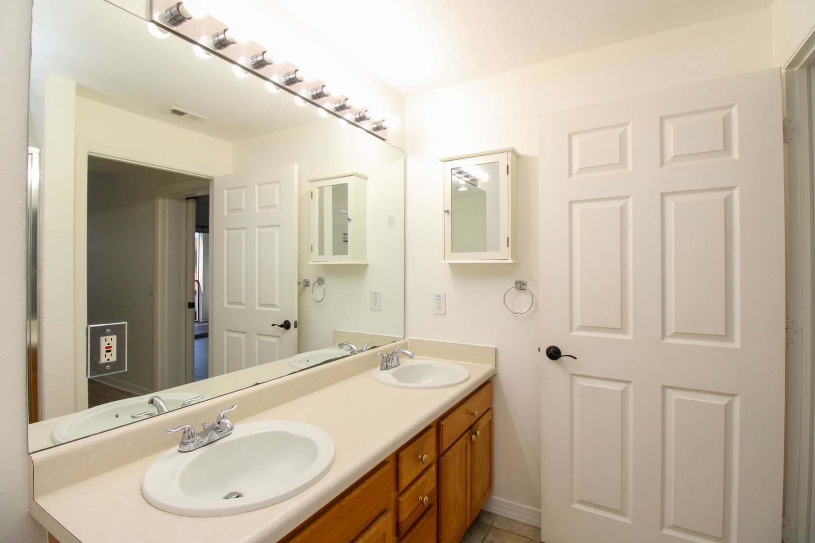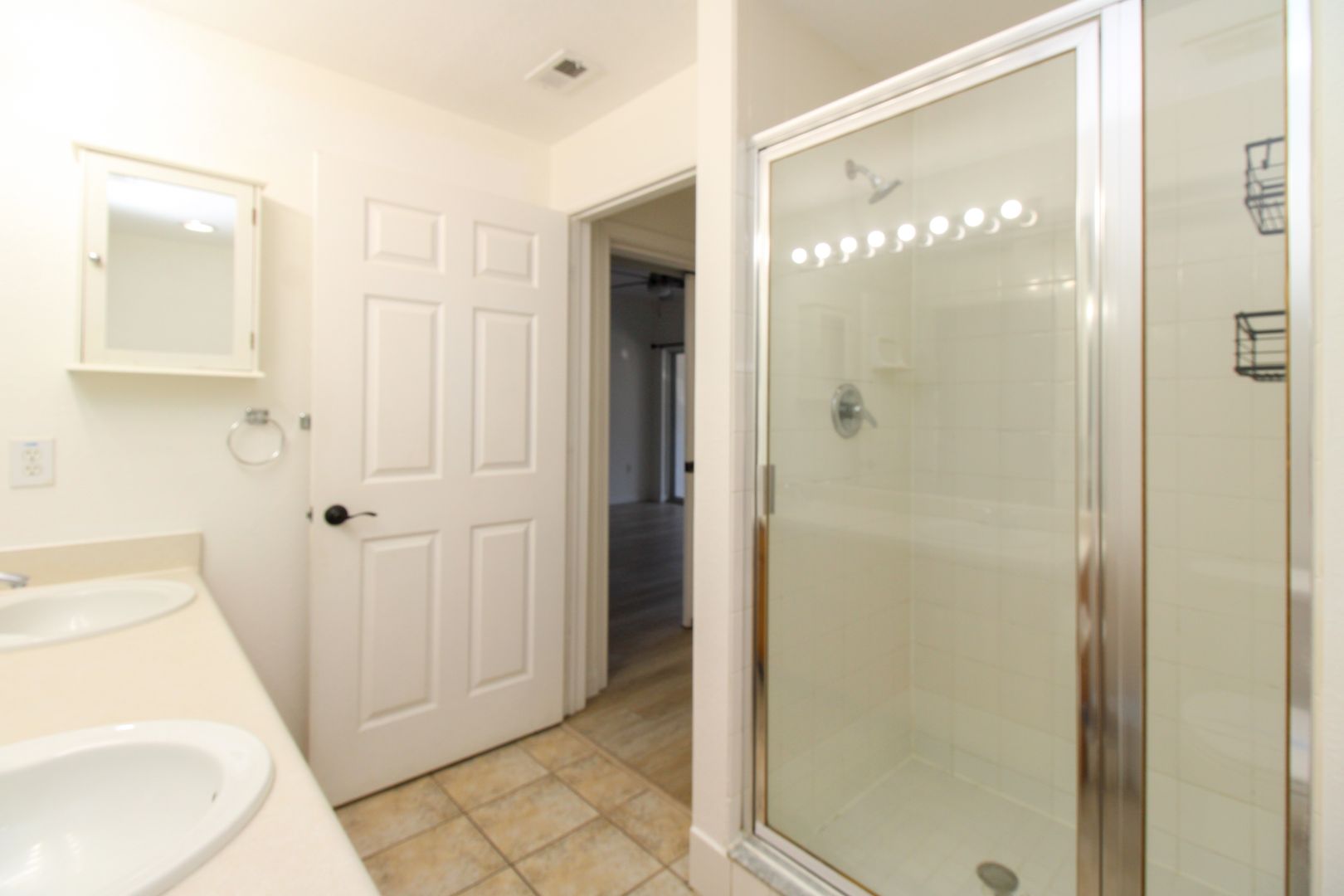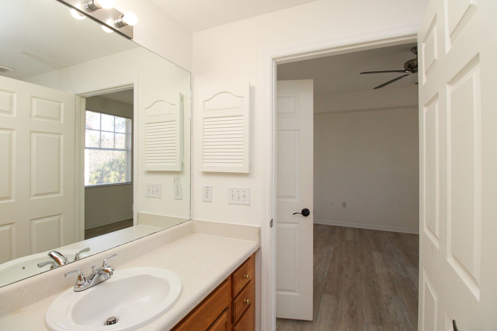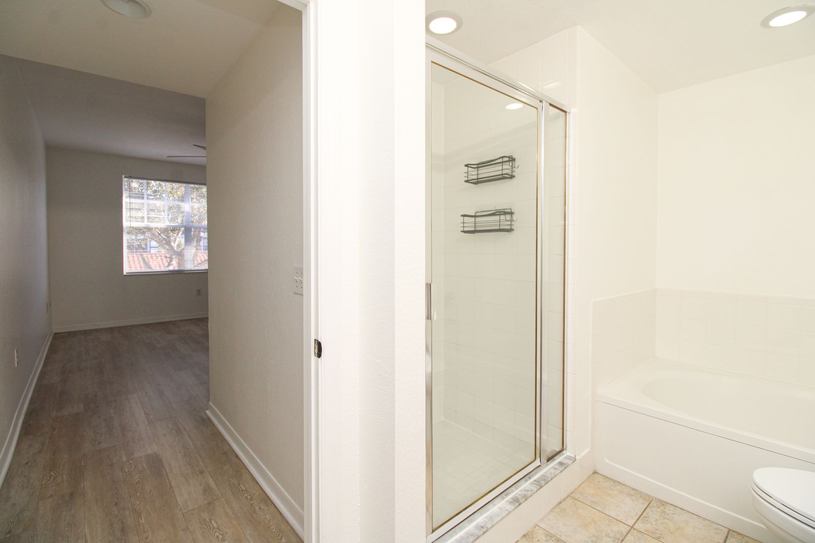 The unit has new flooring throughout, modern barn-door to the master bedroom, and kitchen has been updated with new paint and cabinets.