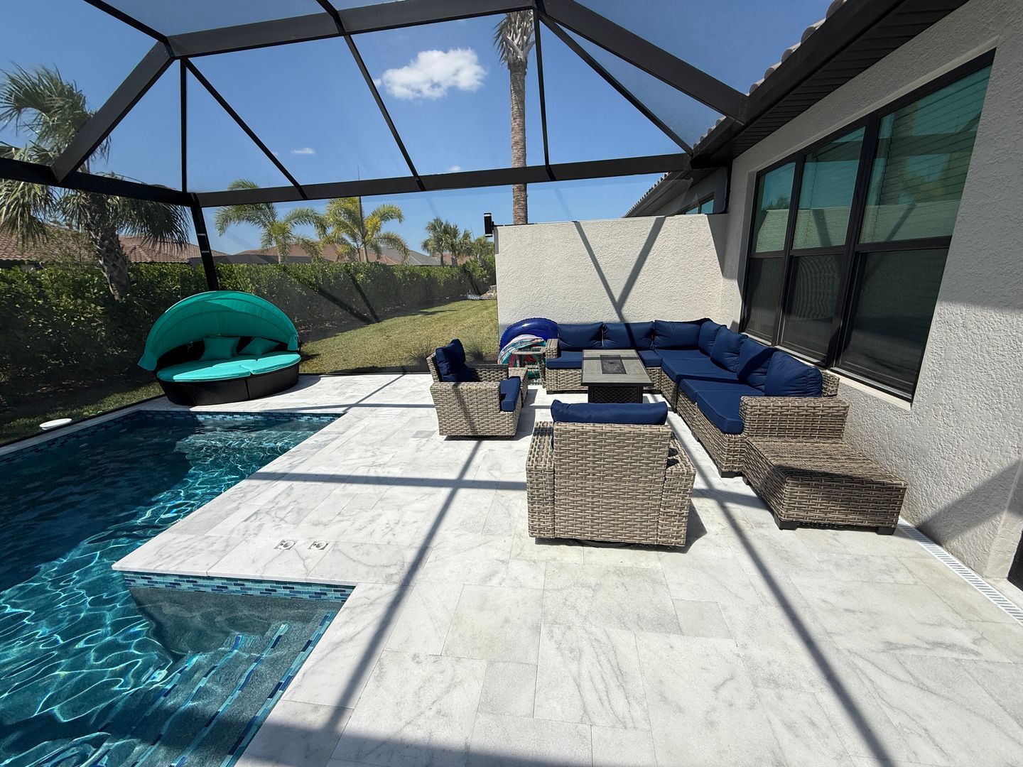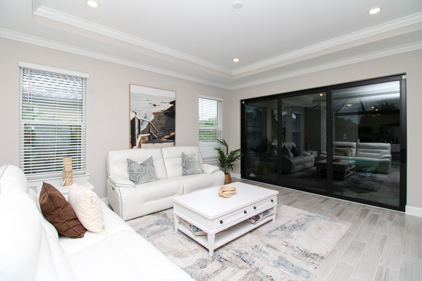 This beautifully furnished residence offers nearly 2,000 sq. ft. of bright, open living space, complete with a 2-car garage and a screened, extended lanai. The floor plan features 2 bedrooms plus a home office, with abundant natural light throughout thanks to its desirable south-facing exposure.