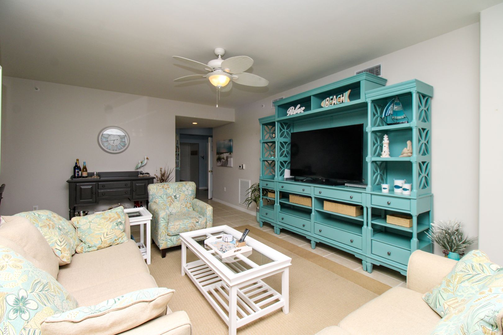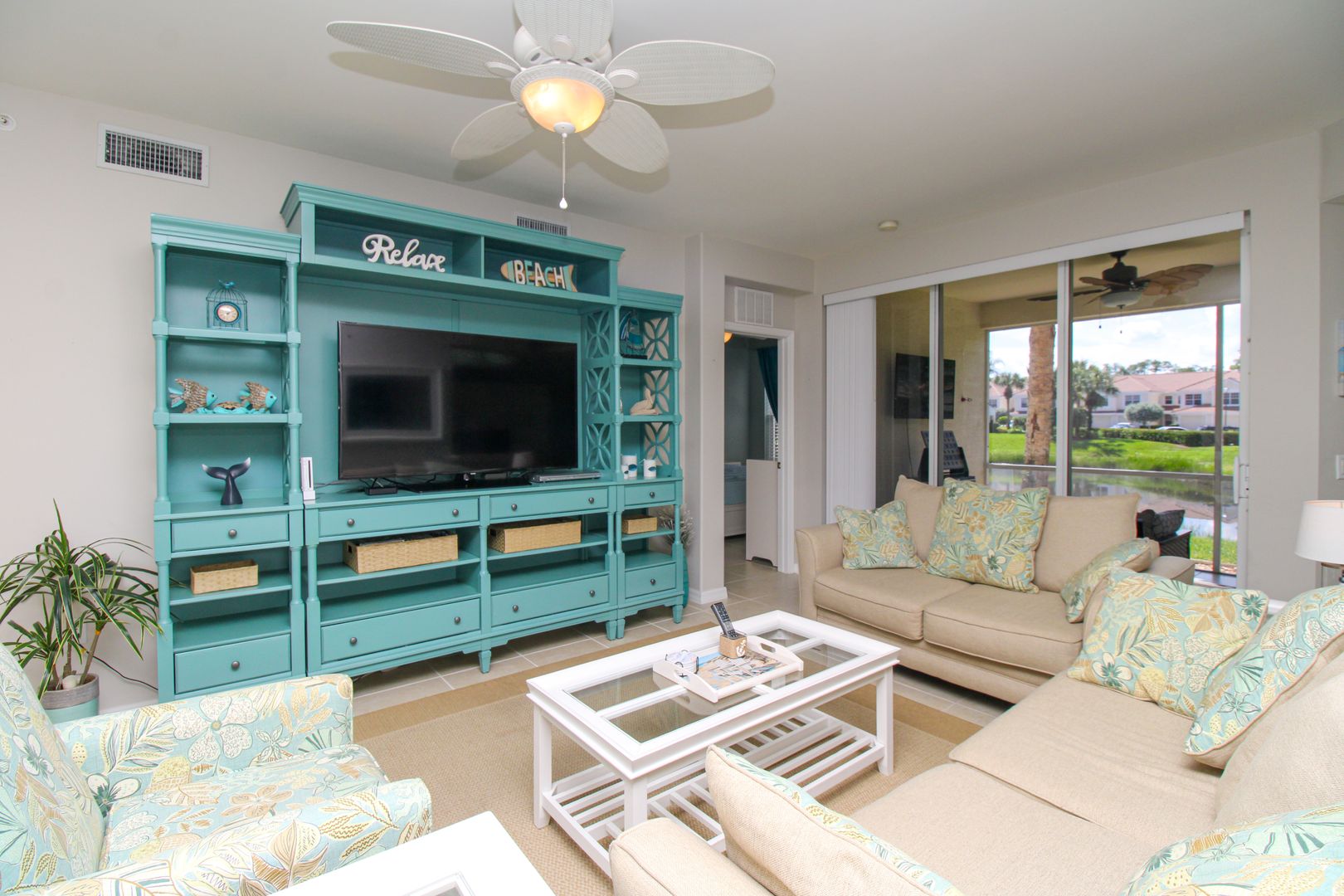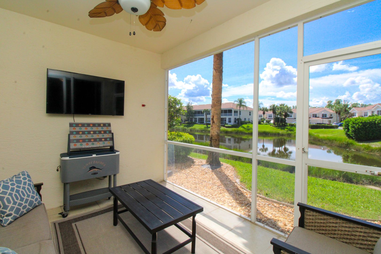 Relax on your conversation lanai set and enjoy nature with a 36" TV for outdoor entertainment