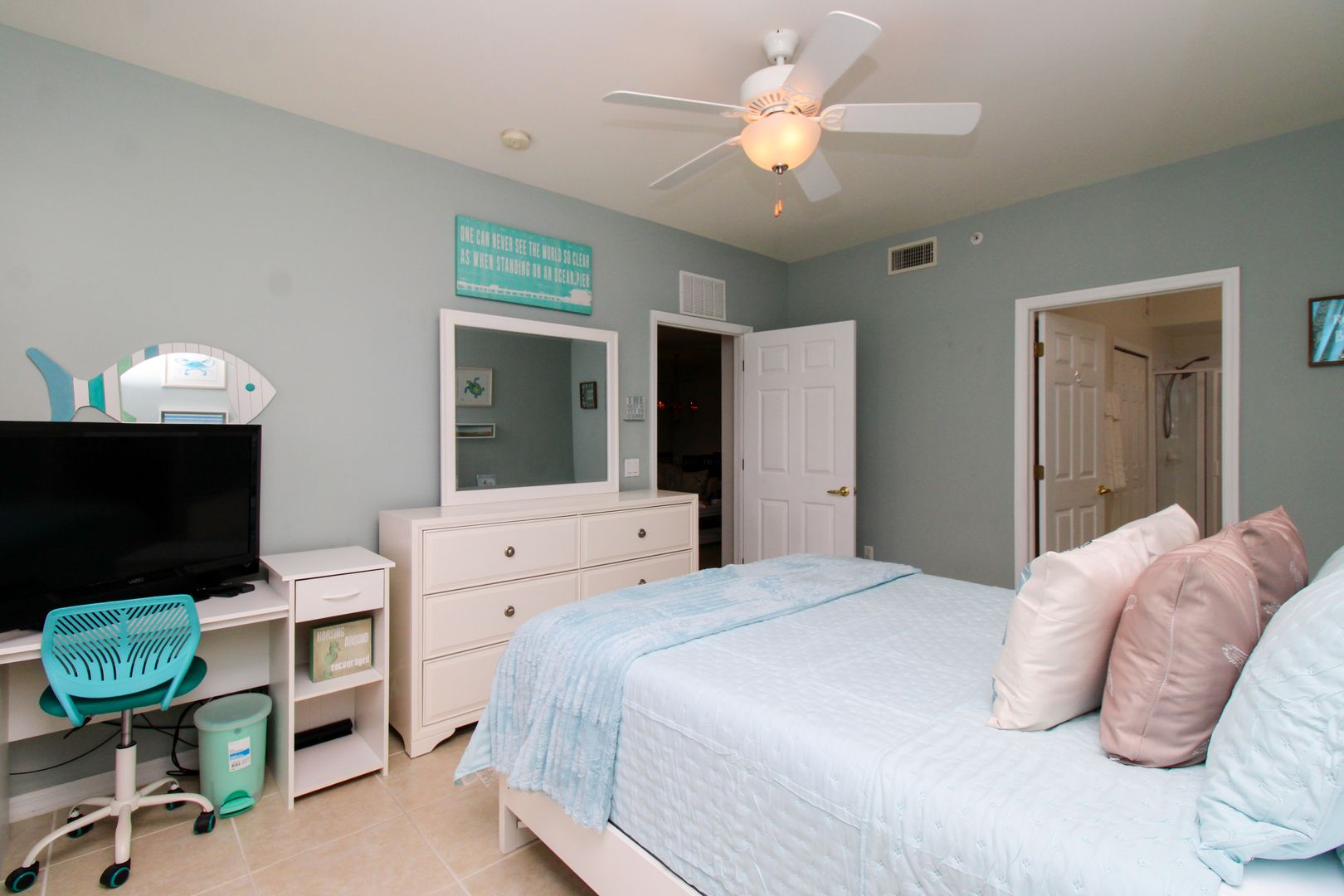Primary Bedroom: Queen Bed + 50" Smart TV